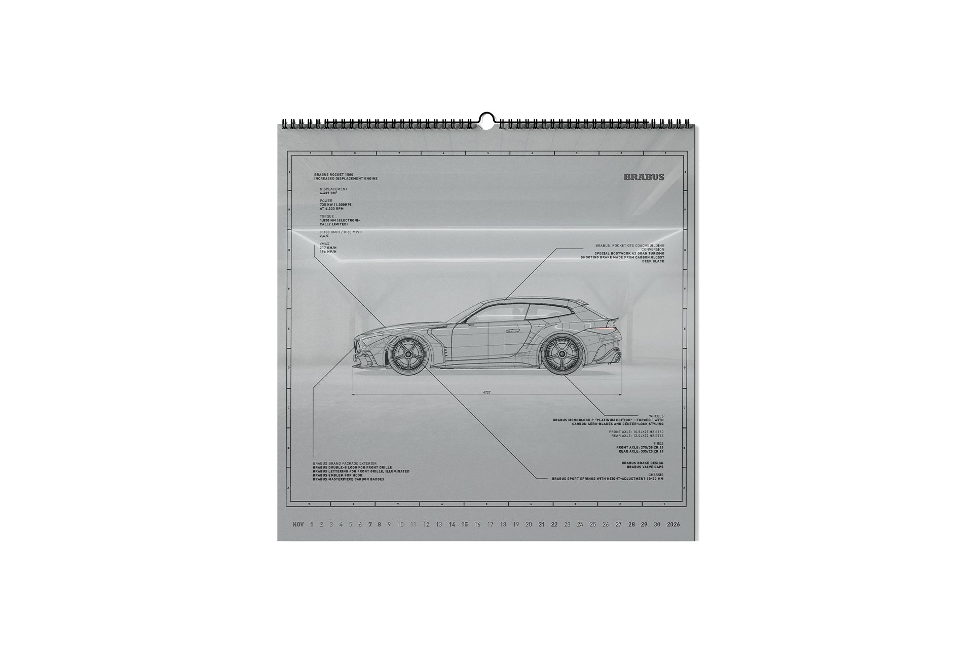 Zwölf aufregende BRABUS Motive fangen den 1-Second-Wow ein. Gedruckt in ultrascharfer Qualität auf hochwertigem seidenmattem Papier. Im Herzen unserer Marke hier in Bottrop entworfen, bringt dieser limitierte Kalender das BRABUS Erlebnis in Ihr Büro, Ihre Garage oder Ihr Wohnzimmer.